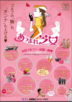 その第1弾としてこの5月からは“ゴルフの「腕」も「オンナ」も上げる”をキャッチフレーズに、女性ゴルファー応援のために数々のプランを盛り込んだ『あつまれ芝女(シバージョ)』企画(下記)を開始しました。