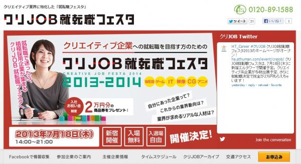 「就転職希望者」と「クリエイティブ企業」とを結ぶ、クリエイティブ業界に特化した就転職イベントです。 2013 年7 月