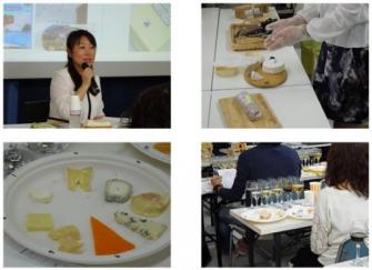その後チーズのテイスティングでは、白カビ4種、シェーブル2種、ウオッシュ2種、青カビ2種、セミハード2種、ハード2種の計14種類のチーズをテイスティングしました。同タイプであっても、熟成期間などの違いにより、味わいが大きく異なることを体感しました。