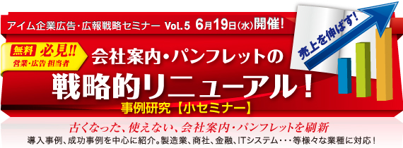 セミナー終了後、ご希望の方を対象に現在ご使用中の会社案内・パンフレットを拝見させていただき、個別にアドバイスを行うパンフレット相談会を無料で実施いたします。