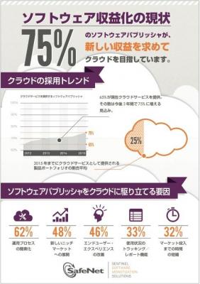セーフネットのバイスプレジデント、Michelle Nerlingeは次のように述べています。「クラウドベースのソフトウェア配信は、ソフトウェア開発会社にとってもエンドユーザーにとっても魅力的です。透明性が増し、より柔軟なビジネスモデルに対応でき、業務の簡素化が実感できることなどがその理由です。こうしたメリットを享受できるかどうかは、ソフトウェア開発会社が自動的かつ業務効果的な方法でアプリケーションを効率的に追跡し、コントロールし、管理できるかどうかにかかっています。つまり、クラウドにおいてソフトウェア収益化を実現するには、効果的なライセンス体系とエンタイトルメント管理手法の導入が鍵となるのです。クラウドに移行中のソフトウェア開発会社やハイブリッドでクラウドを提供するソフトウェア開発会社の場合、オンプレミスとクラウドアプリケーションを合わせて管理できるプラットフォームが非常に重要となるでしょう」。