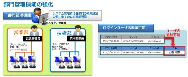 ログの閲覧や集計、レポート作成などを部門ごとに管理できる部門管理機能がさらに強化されます。