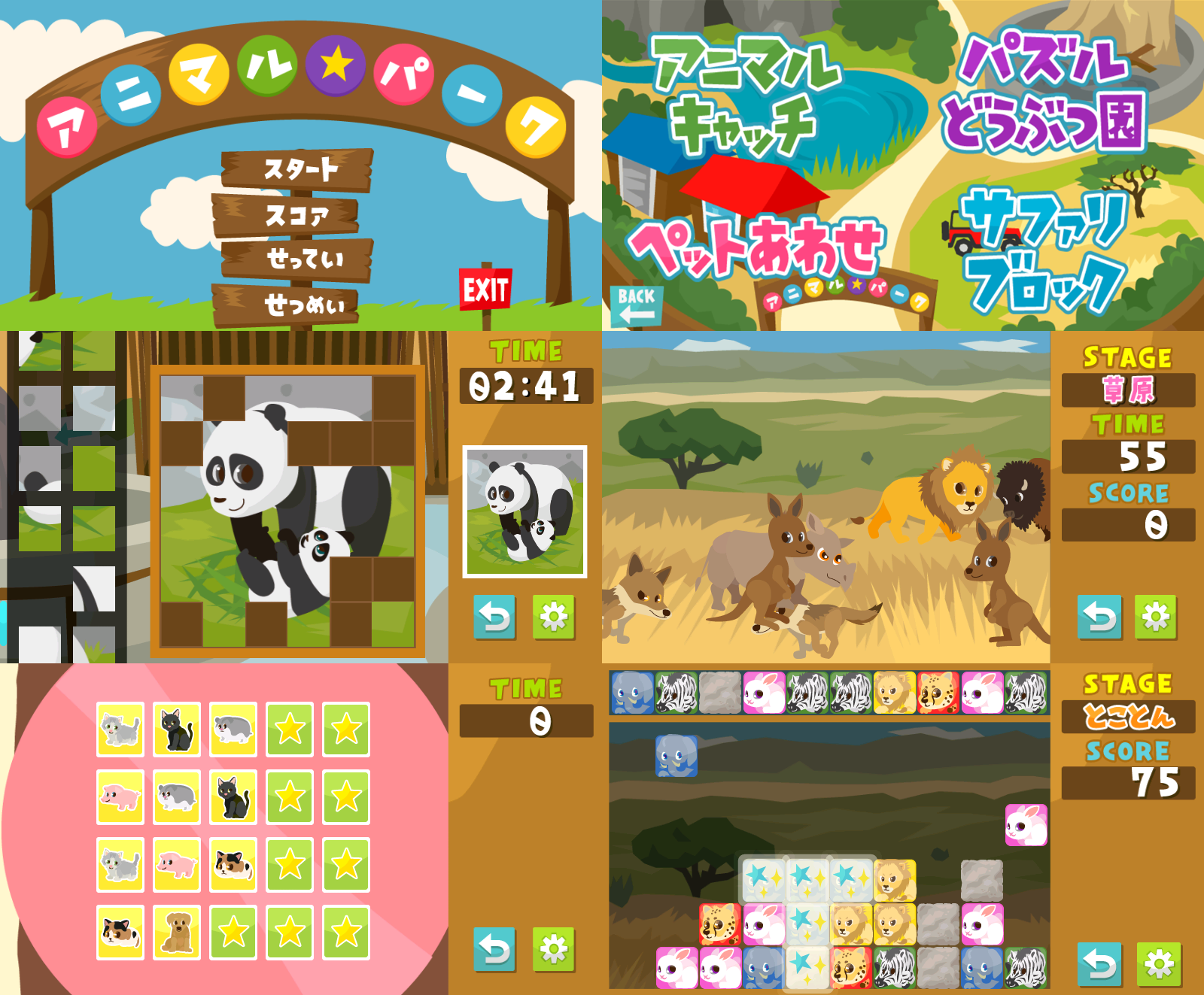 「アニマルパーク」は、Android端末にてかわいい動物たちが登場する4つのシンプルで簡単なゲームが楽しめるアプリケーションです。