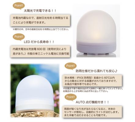 2014年5月1日から発売を開始した【太陽光で充電できる、電源を使わないLEDソーラーライト SOLALA(ソララ)】