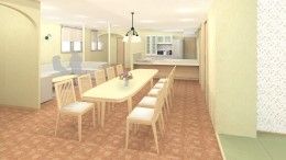 高齢者が昼間、自分の家のように過ごしていただくためにリラックスできる空間にしています。