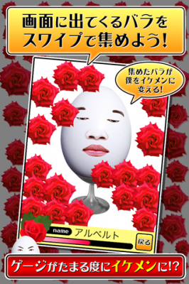 タッチで薔薇を収穫してタマゴをイケメンに育てよう。
