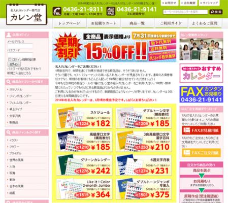 「カレン堂」は、壁掛けタイプや卓上タイプなど100種類以上のカレンダーに企業名などの名入れ印刷をする『名入れカレンダー』の専門サイト。