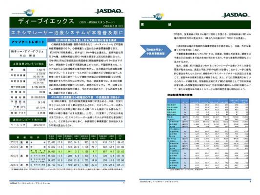 心臓疾患系医療機器・器具の販売会社で,ペースメーカーなど不整脈疾患関連機器のほか,心筋梗塞など虚血性心疾患関連機器も扱う。前2013年3月期業績は,前年比11.6%の増収を達成し,営業利益は同26.0%増,当期純利益は同43.4%増と想定を上回る好決算になった。12年4月に・・・