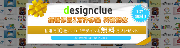 2012年9月19日より、クローズドβ版としてdesignclueを正式にリリースし、約8ヶ月でデザイン累計投稿数が2万作品を突破しました。 今回は投稿作品2万件突破を記念しまして、“抽選10社限定 ロゴデザイン無料プレゼントキャンペーン”を実施しております。
