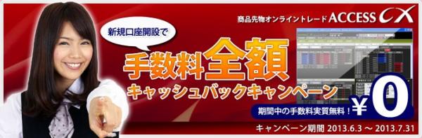 【商品先物】「アクセスCX手数料全額キャッシュバックキャンペーン」実施について