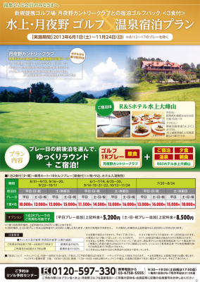< 「R&Sホテル水上大峰山」+「月夜野カントリークラブ」=1泊3食付1Rプレー>