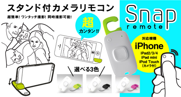 集合写真や自分撮りにも便利なiPhone、iPad、iPod Touch用スタンド付きカメラリモコン