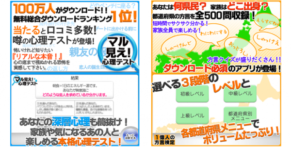 株式会社レンサ(本社:東京都港区、代表取締役社長:武井 哲也、以下レンサ)は、2013年6月3日に、ひかりTVアプリ向けアプリケーション『99%見抜く!マル見え心理テスト』『1億人の方言検定』2タイトルの提供を開始しました。ダウンロードは無料です。