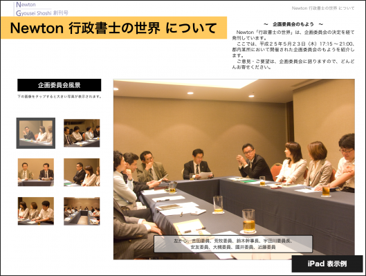 「Newton 行政書士の世界 について」では、企画委員会のもようを紹介しています。