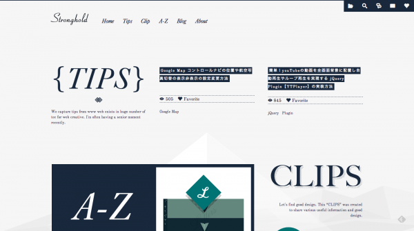 「Stronghold」は世界中に存在するかっこいいサイトの展示、またHTML5、jQuery、Photoshop等のWEBデザインに関する小技等をTIPとしてまとめ、クリエイターの方にとって、さりげなく便利な情報を配信するサイトです。