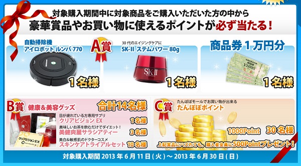 購入期間6月11日~6月30日に特定のキャンペーン対象商品ををお買い上げ頂いたお客様に、