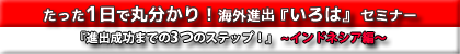 【『海外進出いろは』セミナーとは!?】 海外進出の基本情報から会社設立、進出後の販路拡大方法まで、すなわち「海外進出のいろは」が一日でわかる 「Digima~出島~」主催の特別セミナーです。これまで 3000 件以上の海外進出相談を受けた実績から「Digima~ 出島~」が、独自にそれぞれの国の「進出のいろは」を抽出。一日受ければ現地の基礎情報から会社設立手続き、 進出後の販路開拓、現地人材採用まで、広い知識を身につける事ができるセミナーになっております。