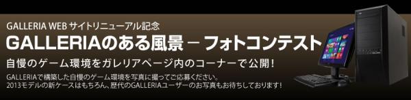 株式会社サードウェーブデジノス(取締役社長 : 松野康雄、本社 : 東京都千代田区)は、本日2013年6月13日(木)より、ガレリアユーザーご自慢のゲーム環境を写真で投稿する「GALLERIAのある風景 - フォトコンテスト」の実施を発表、同日より作品の募集を開始いたしました。