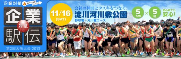 東京での初開催以来、参加社数は順調に伸びており、2010年は91社(123チーム、1,759名)、2011年は131社(175チーム、2,213名)、2012年は228社(387チーム、3,792名)、2013年は382社(718チーム、5,500名)と3年前から実に約4倍の参加社増となりました。今回はその企業対抗駅伝の大阪大会として、300チームの参加を見込んでおります。