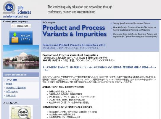 学会:「Product and Process Variants & Impurities- 産物および工程に関するバリアントおよび不純物 2013年学会」