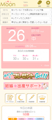 スマートフォン向け無料生理日予測サイトMoon
