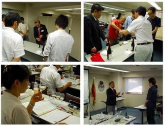 2日目は、テイスティングコメントの作成方法と、ワインの保存管理、劣化してしまったワインをテイスティングし、サービスする際に必要な管理方法とテイスティング能力を学び、筆記試験とテイスティング試験に挑みました。また、ワインを扱ううえで、必要な調度品や、サービス方法を学びました。短期かつ、ハードともいえる講座内容のなか、全員認定となりました。