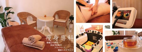 南堀江にある完全予約制の貸切プライベートサロン。1対1で施術を行いますのでお子様連れのお客様も多く来られます。モデル様の体のケアをさせて頂いているサロンでもあります。痩身専科は株式会社Smartaleckが運営する「エステサロンの半独立制度」で1部屋1店長という形で運営されています。