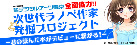 第1弾は専門学校デジタルアーツ東京と提携して、同校のプロ作家を目指すノベルス学科の学生からライトノベルを募集します。ポケクリ内の特集ページで公開し、ポケクリユーザーに最も読まれた作品を大賞に選出します。