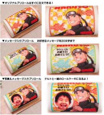 お手持ちのお写真とメッセージ(約30文字以内)を、「NARUTO -ナルト- 疾風伝」のロールケーキにプリント致します。