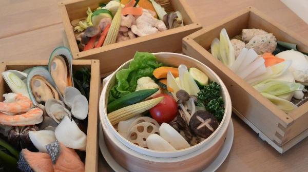 スパ内のレストランでは、夏限定のフェアとして「ヘルシーセイロ蒸しフェア」を開催中です。様々な食材と季節の野菜を使ったセイロ蒸しを取り揃えました。