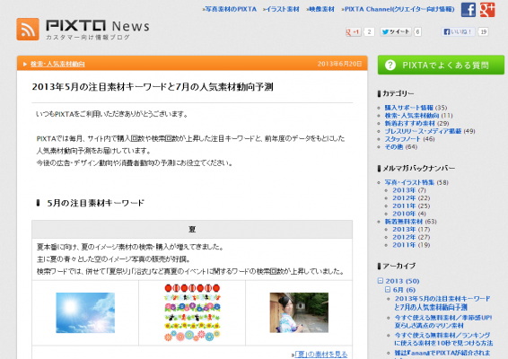 2013年5月の注目素材キーワードと7月の人気素材動向予測を発表