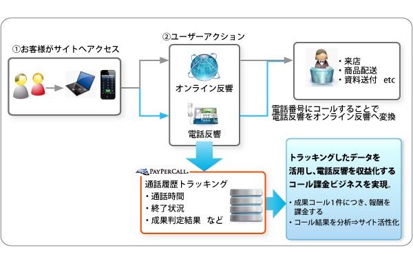 「ペイパーコール」は、広告主・メディアへ専用の電話番号を付与して、同番号によるお客様からの電話の着信記録を行えるクラウド型サービスです。