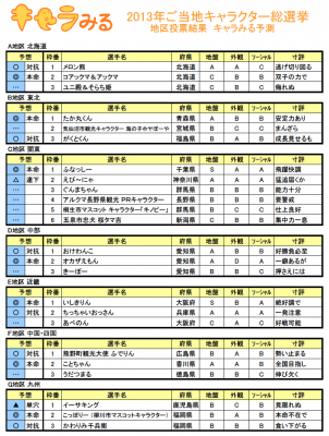 「キャラみる」独自のキャラクター反響数値から予測される決勝進出(地区予選通過)キャラクターは下記です。