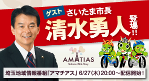 6月27日(木)のアマチアス(制作配信:パンダスタジオさいたま(運営:エクシム株式会社))では、先日二期目の当選を果たした清水勇人さいたま市長、さいたま市シティセールス推進課の柳田香課長補佐、およびさいたま市のPRキャラクター・つなが竜ヌゥをゲストとして招き、さいたま市長の素顔に迫るとともに、今秋行われる「さいたまクリテリウム by ツールドフランス」などさいたま市の今後の活動について伺います。(配信:6月27日(木)20時~)