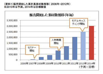 来年度末(2014年12月)には素材点数1,000万点を目標に、