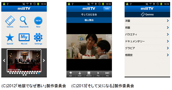 新名称の「millTV(TM)」には、「観る」と「たくさんの(million=ミリオン)」 の動画が楽しめるという意味が込められております。