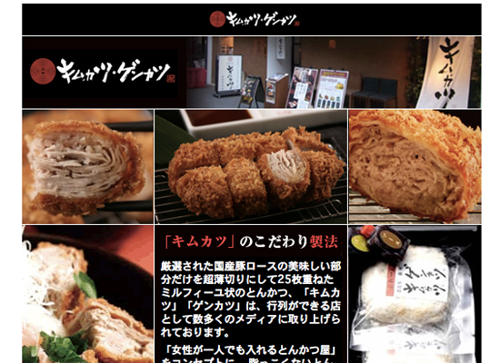 キムカツ・ゲンカツは、「女性が一人でも入れるとんかつ屋」をコンセプトに、 脂っこくないとんかつ「キムカツ」の開発から、 店内インテリアデザインまで、従来の『とんかつ屋』のイメージを覆す、全く新しいダイニングを誕生させました。数多くのメディアに行列ができる店として取り上げられております。