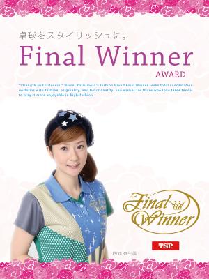 この「Final Winner アワード」は、四元奈生美選手が立ち上げたブランド「ファイナル ウィナー」の「強くてカワイイ」をコンセプトに、卓球をもっとスタイリッシュにするTシャツデザインを募集します。また、ソーシャルメディアを活用したスコアリング(人気投票)を行い、受賞デザインを選びます。