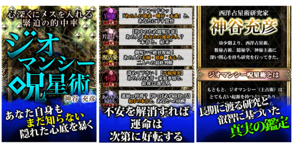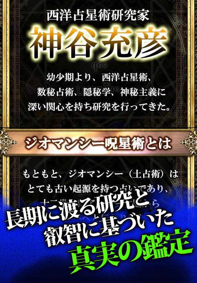 ・アプリ名称:口コミ1位当たる占い【緊迫の的中率 ジオマンシー呪星占 神谷充彦】