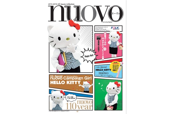 ユニフォームを製造販売するフォーク株式会社(社長 小谷野淳)は、本年創業110周年を迎えました。これを機に当社の事務服のカタログ・nuovo(ヌーヴォ)では2013年Spring & Summer and All Seasonカタログより、「2012年 サンリオ☆キャラクター大賞」でも1位に輝く『ハローキティ』によるプロモーションを展開しております。この度は、そのプロモーションの一環として、2013年All Season nuovoカタログにて『ハローキティ(本人)』が制服を着て登場致します。