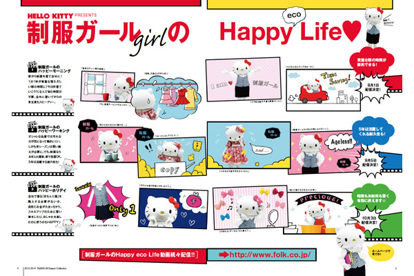 カタログの発刊に合わせ、企画ページにもあるハローキティによる「制服ガールのHappy eco Life」のオリジナルムービーを7月8日より配信開始致します。