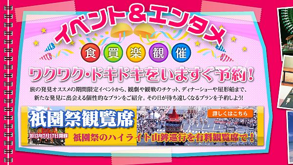 株式会社ティー・ゲート(本社:東京都千代田区、社長:橋屋 哲)が運営するトラベルサイト「旅の発見」(http://tabihatsu.jp)では、『イベント&エンタメ』ページの公開を2013年6月20日より開始しました。『イベント&エンタメ』は、「旅の発見」で人気の『日帰り温泉』『体験プラン』に次ぐ、3つめの新たなテーマとして誕生しました。