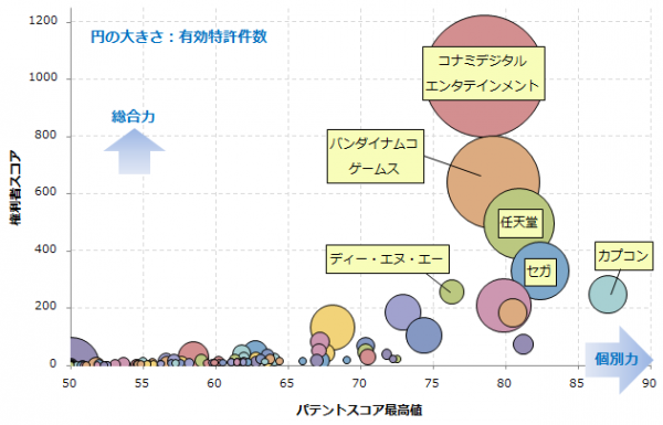 また、ディー・エヌ・エーは当該分野で12件の有効特許が見られます。これらは全て2011年以降の出願と非常に新しいものの、いずれも特許登録に至っており、権利化意欲の面から評価を大幅に上げ、5位にランクインしました。