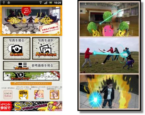 かめカメラとは摩貫光殺砲(マカンコウサッポウ)、波動拳、かめはめ波風の漫画コラージュ写真をスタンプを使って簡単に作ることが出来る写真加工アプリです。リリース10日で10万ダウンロードを達成し、その後もLINEや各種SNSに置けるユーザーの口コミを中心に順調に数字を伸ばし2013年7月1日40万ダウンロードを達成いたしました。作成された約71万枚の写真の内、約8万枚がLINEや各種SNSで共有されており、仲の知れた友人、家族の間での拡大をしております。