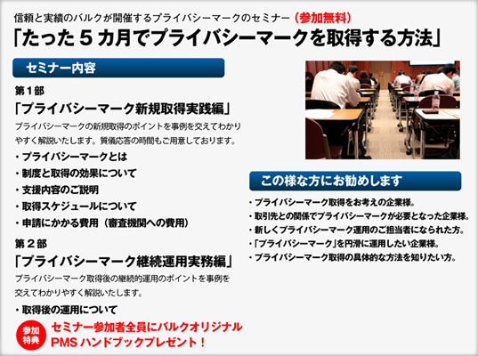 【株式会社バルクのたった5ヶ月でプライバシーマークを取得する方法を解説「プライバシーマーク特別セミナー」について】