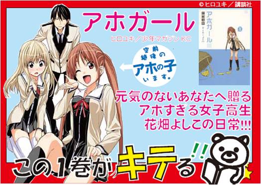 今回は2企画同時リリースとなります。「コミックゼノン」で連載中の「ワカコ酒」(新久千映/徳間書店)と、「週刊少年マガジン」で連載中の「アホガール」(ヒロユキ/講談社)。日販は、フェア展開書店に対して、作品別にそれぞれ店頭オリジナル拡材を提供します。「ワカコ酒」については、購入者特典として、著者書き下ろしメッセージペーパーも提供します。書店と協力体制を取り、店頭から「今、この作品がキテる!」事実を強力に訴求し、第1巻の更なる売り伸ばしを図ります。