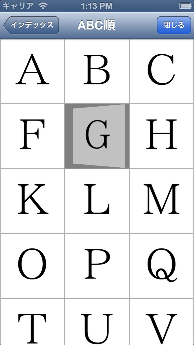 周囲の単語も見渡せるタッチパネル検索を搭載 画面を最大限活用したタッチパネル検索を搭載。単語を記したパネルを所狭しと並べることで周囲の単語を見渡すこともでき、従来不足しがちとされてきた一覧性を補いました。