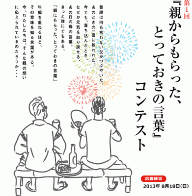 ■選考方法:「親からもらった、とっておきの言葉」選考委員会により、大賞、準大賞、佳作として表彰いたします。