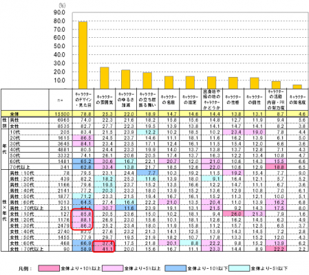 女性10代~40代は「キャラクターのデザイン・見た目」重視。