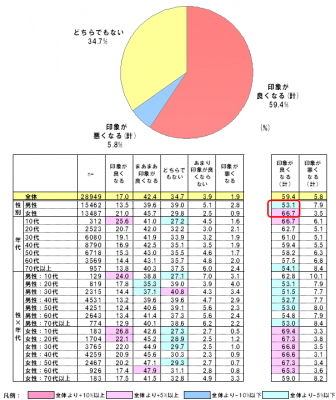 「印象が良くなる(計)」に女性が6割以上。